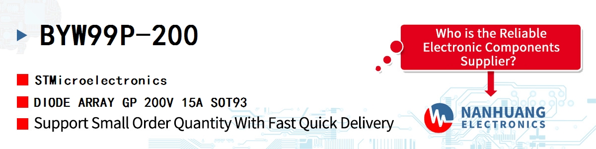 BYW99P-200, ST authentic parts in stock from STMicroelectronics authorized distributors, order today, can ship immediately.
