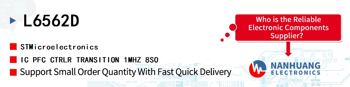 L6562D, ST authentic parts in stock from STMicroelectronics authorized distributors, order today, can ship immediately.