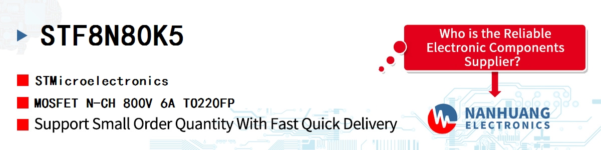 STF8N80K5, ST authentic parts in stock from STMicroelectronics authorized distributors, order today, can ship immediately.