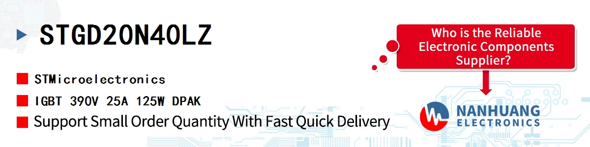 STGD20N40LZ, ST authentic parts in stock from STMicroelectronics authorized distributors, order today, can ship immediately.