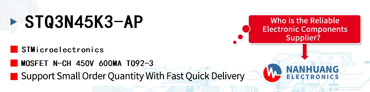 STQ3N45K3-AP, ST authentic parts in stock from STMicroelectronics authorized distributors, order today, can ship immediately.