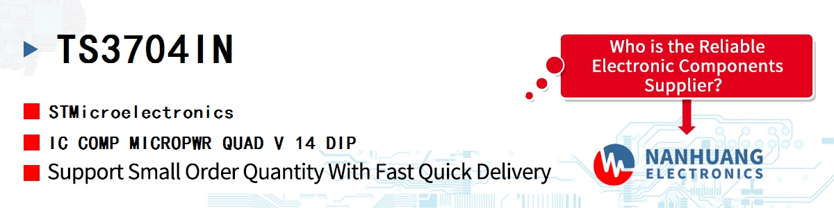 - TS3704IN STMicroelectronics, IC COMP MICROPWR QUAD V 14 DIP, Integrated Circuits (ICs)~Linear - Comparators