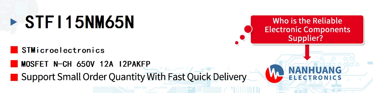 STFI15NM65N, ST authentic parts in stock from STMicroelectronics authorized distributors, order today, can ship immediately.